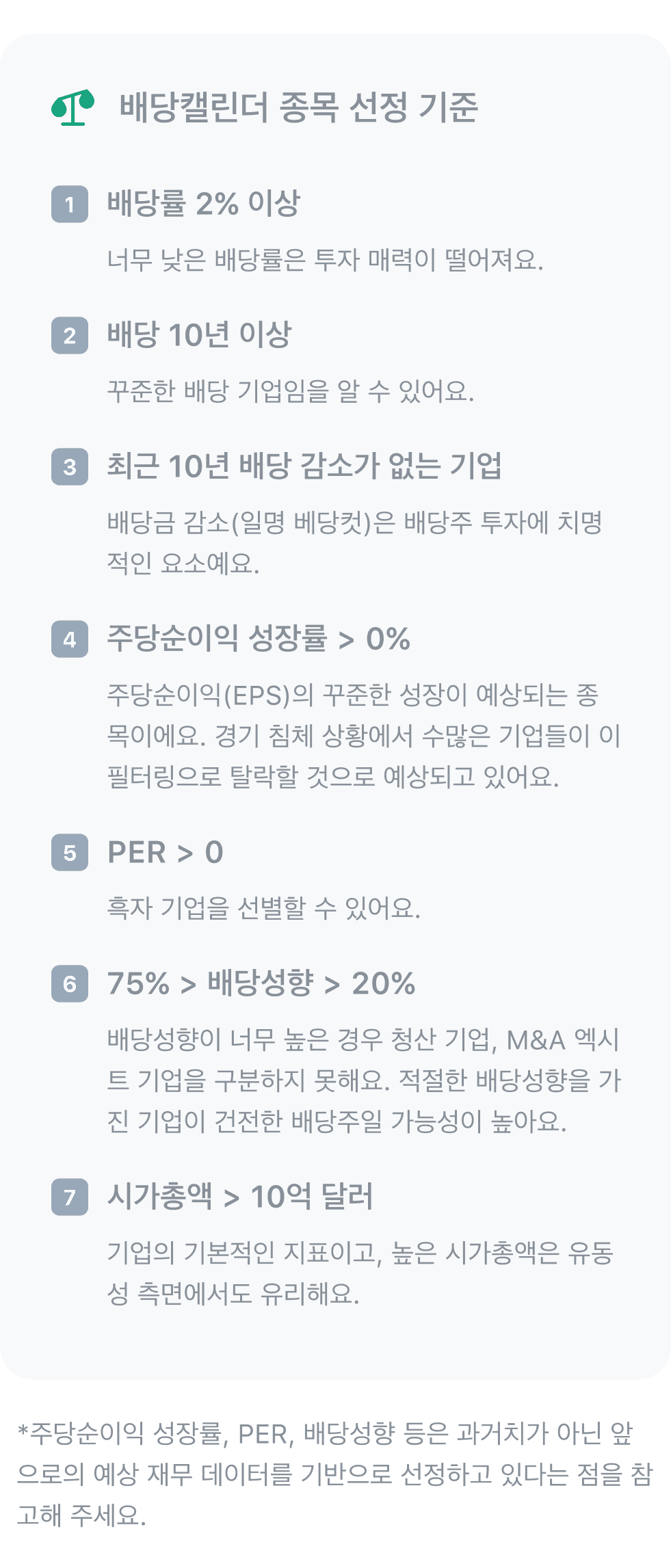 배당락일 전 영업일까지 매수하여 보유하고 있어야 배당금이 지급됩니다. 또한, 분기 배당 등 배당 주기나 배당 지급일 등은 배당 상세 정보를 꼭 확인하시기 바랍니다.